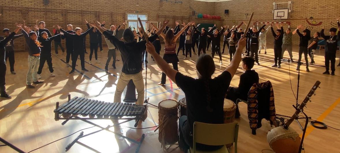 El taller combinat de dansa i percussió de l'Àfrica de l'Oest consisteix en tenir una primera presa de contacte amb la cultura d'un altre continent mitjançant la dansa i la percussió.